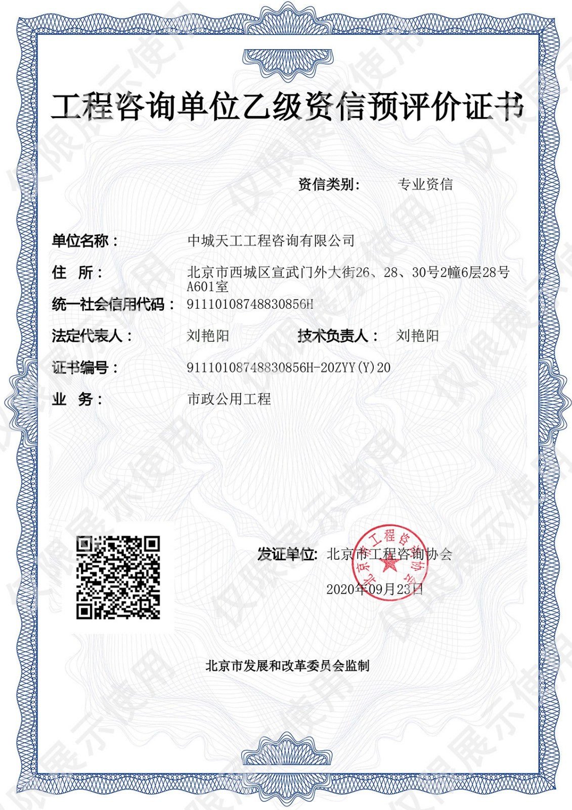 工程咨询单位乙级资信预评价证书