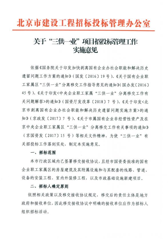 关于“三供一业”项目招投标管理工作实施意见