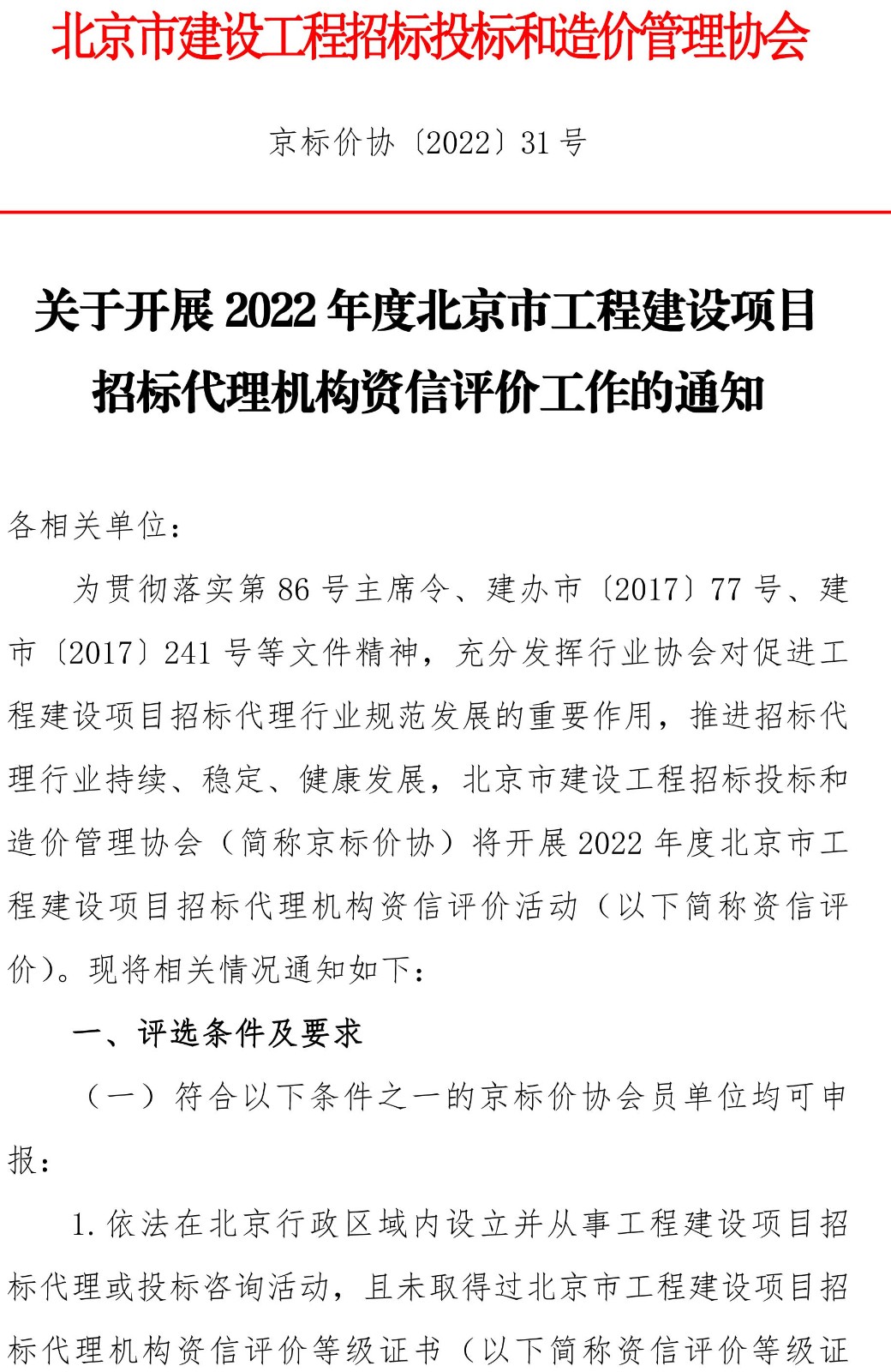 2022年6月7日,北京市建设工程招标投标和造价管理协会发布了“开展2022年度北京市工程建设项目招标代理机构资信评价的通知”,通知中公布了2022年度评选条件及要求、申报方式及流程、申报时间、有关问题说明及本年度评定负责人及联系方式。据悉,本次招标代理资信评价申报的截止时间为2022年7月22日,新办理资信等级或需进行等级升级的工程建设项目招标代理机构可持续关注!以下为通知全文,资信评价管理办法详见附件。