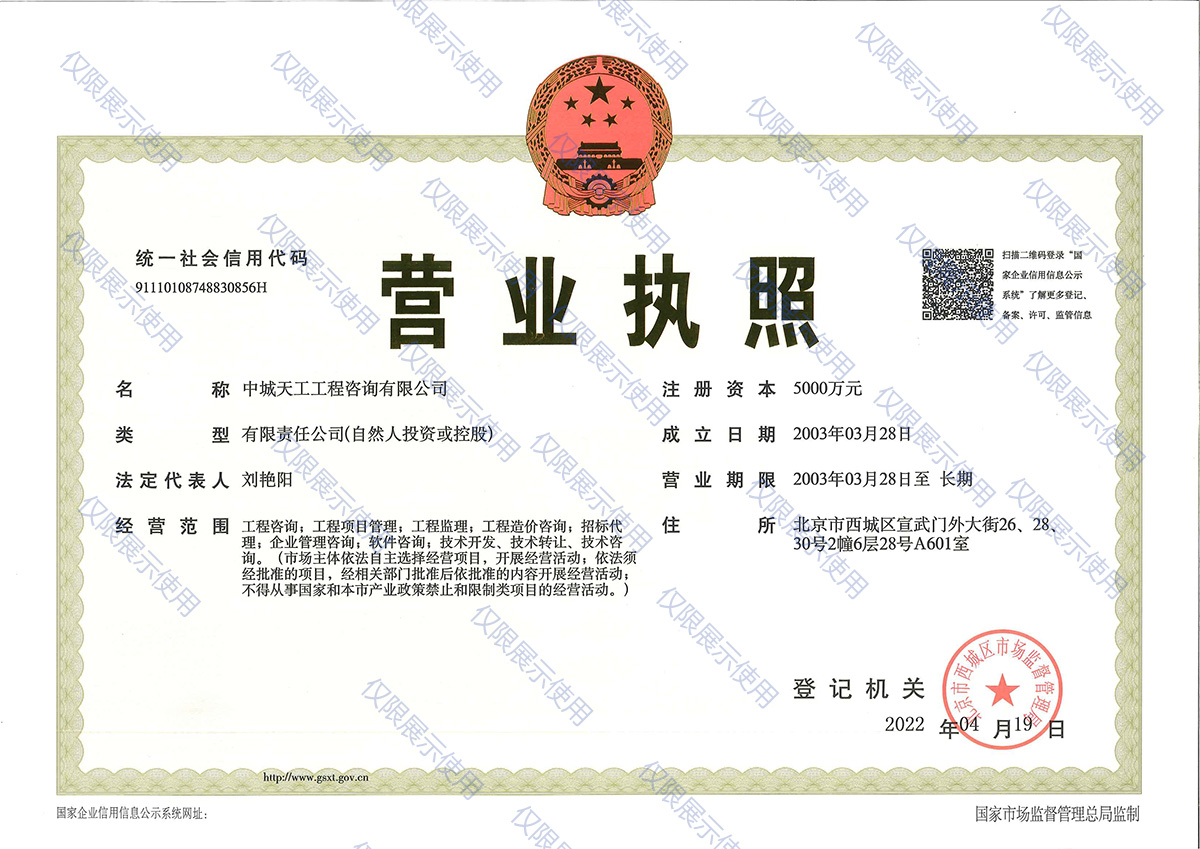 中城天工工程咨询有限公司营业执照