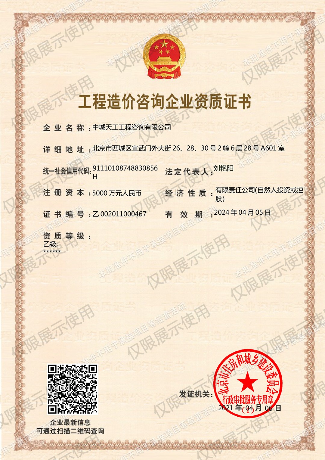 工程咨询单位乙级资信预评价证书